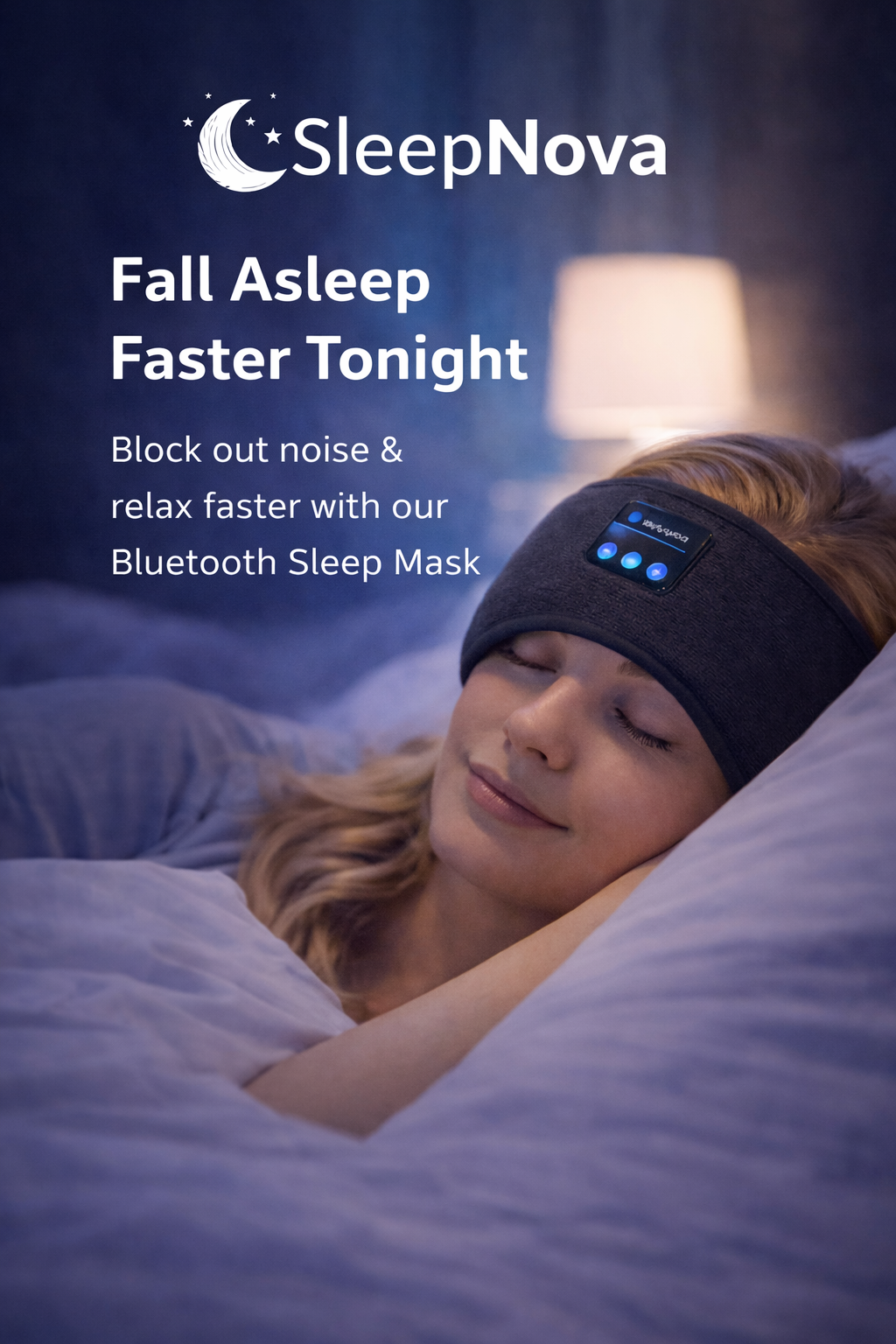 The SleepNova Bluetooth headband connects wirelessly to your phone, allowing you to listen to relaxing music, white noise, or sleep sounds while blocking outside distractions. The soft fabric design keeps it comfortable all night.